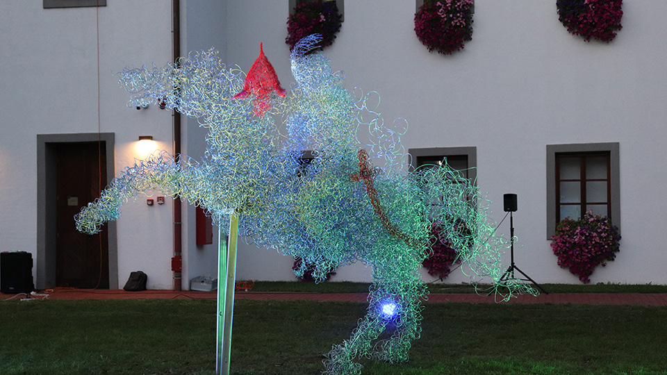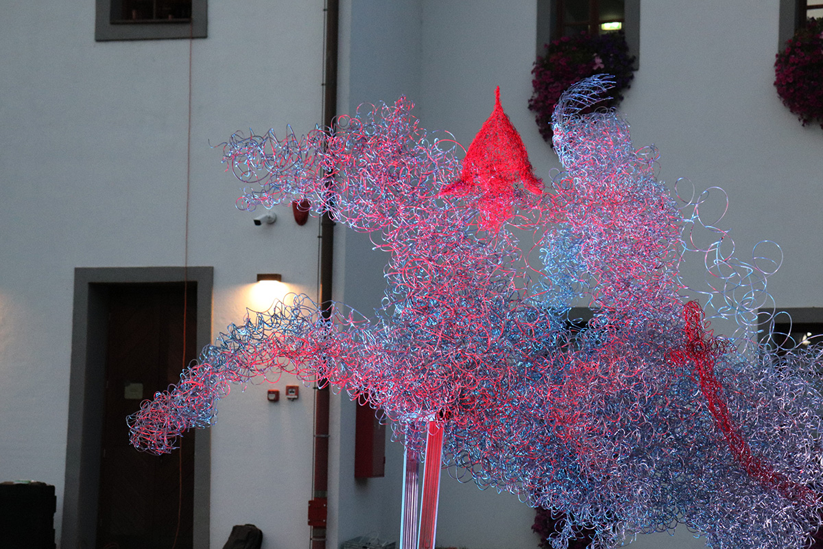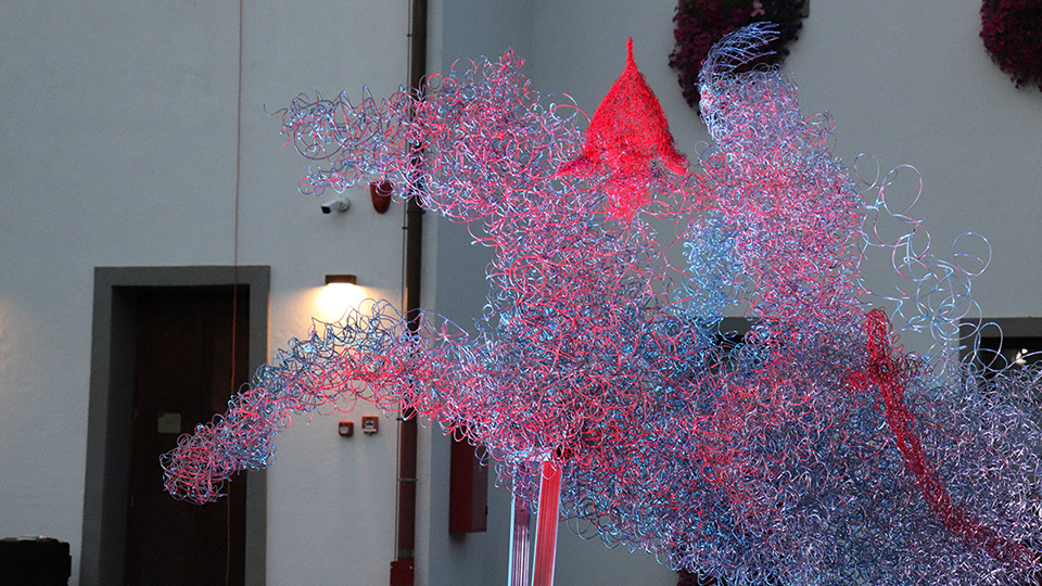 U ovu smo skulpturu upleli gotovo četiristo kilograma žice, stvorili smo novu kiparsku morfologiju. Još je jedna inovativnost to da se duhovna baština koju predstavlja Zrinski da na poklon narodu koji je baštini i svim gostima koji tu dolaze. Ovo je iskorak, suvremeni pristup kulturi povezivanjem s poviješću i baštinom, rekla je jedna od autorica skulpture Dijana Iva Sesartić.
