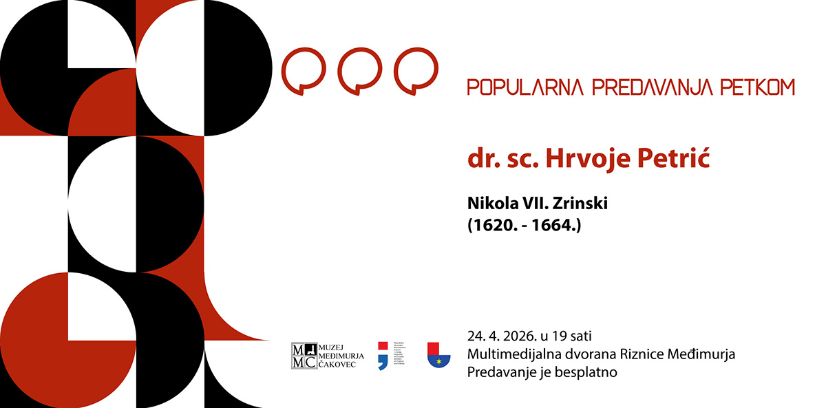 U travanjskom izdanju Popularnih predavanja petkom ugostit ćemo dr. sc. Hrvoja Petrića s Filozofskog fakulteta u Zagrebu. Dr. sc. Petrić će se u predavanju posvetiti liku i djelu Nikole VII. Zrinskom, jednom od najznačajnijih plemenitaša 17.-stoljetne Europe koji je stolovao u Čakovcu.