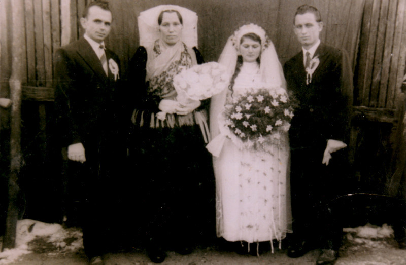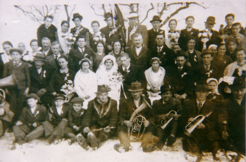 Nigdje. Vjenčanica u većini slučajeva nije bila jednodijelna haljina namijenjena samo trenutku vjenčanja. Mladenke su oblačile najsvečaniju „opravu“ koju su imale. Uslijed velike neimaštine, nju su često i posuđivale. Odjeća u kojoj su se djevojke udavale obično je bila plisirana suknja (šos) i svečana bluza. Na nju se nosio bundek, bajka ili dudač (podsjetimo se, svadbe su bile ujesen ili zimi). Mladići su isto tako nosili najbolju odjeću koju su imali. No, za razliku od djevojaka, mladići su već početkom 20. stoljeća usvojili građansko odijelo. Ženili su se u odijelima koje su im većinom kupovali krsni kumovi. To su odijelo brižno čuvali i nosili u kasnijem životu samo u svečanijim prigodama.