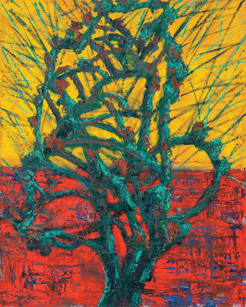 Figuralne kompozicije usred žitnih polja, slike metamorfoza ljudskih tijela, pejzažni prospekti, svjetlosni refleksi dalekih obzorja i mikrostrukture kamenih zapisa motivi su koji ispunjavaju metafizički prostor Petračeva slikarstva. Prizori nabijeni zavičajnim znakovljem i kadrovi uzbibanih oranica s reljefno modeliranom grudom kruha slike su umjetnikova putovanja u iskon postanka.