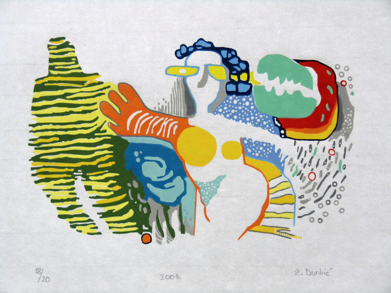 Izložba grafika akademskog slikara i konzervatora-restauratora Zorana Durbića predstavlja specifičnu likovnu cjelinu njegova bogatog opusa, izvedenu u grafičkoj tehnici visokog tiska. Čine ju ručno otisnute figuralne i apstraktne kompozicije linoreza u boji, drvoreza u boji te linoreza u crnoj boji. Svaka je diferentna u tehničkom pristupu, pripremnom crtežu, materijalu, a ponajviše likovnom karakteru djela - izraženiji ili manje izraženiji odnos ploha-linija, punoprazno te gradacije boja. Tome je prethodilo likovno razumijevanje forme i potpuno baratanje grafičkim postupcima inspiriranim crtežom i slikarstvom. Dugotrajna priprema zahtijevala je razmišljanje o zrcalnosti i grafici kao alatu za neposredno otiskivanje umjetničkih djela, od kojih je manji dio apliciran na tankom shio-hara japanskom papiru.