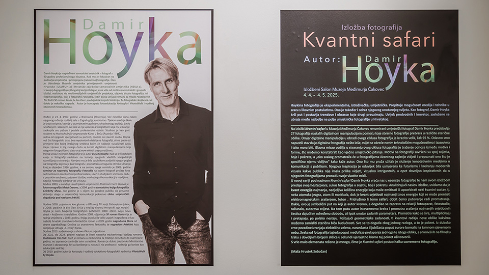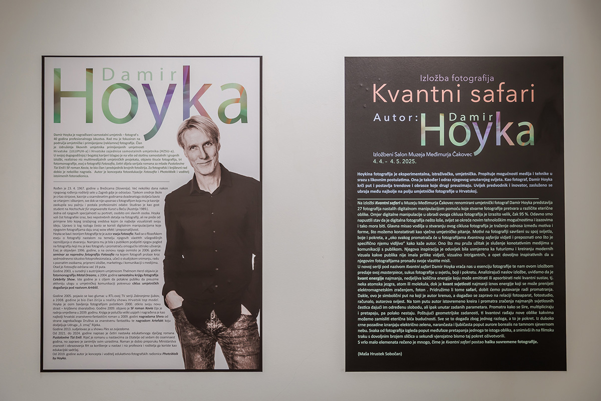 U petak, 4. travanja 2025. godine u Izložbenom salonu Muzeja Međimurja Čakovec otvorena je izložba renomiranog fotografa Damira Hoyke „Kvantni safari“. Sadrži 27 fotografija nastalih digitalnom manipulacijom pomoću koje stvarne fotografije pretvara u različite eterične oblike, materijalizira nevidljive svjetove.