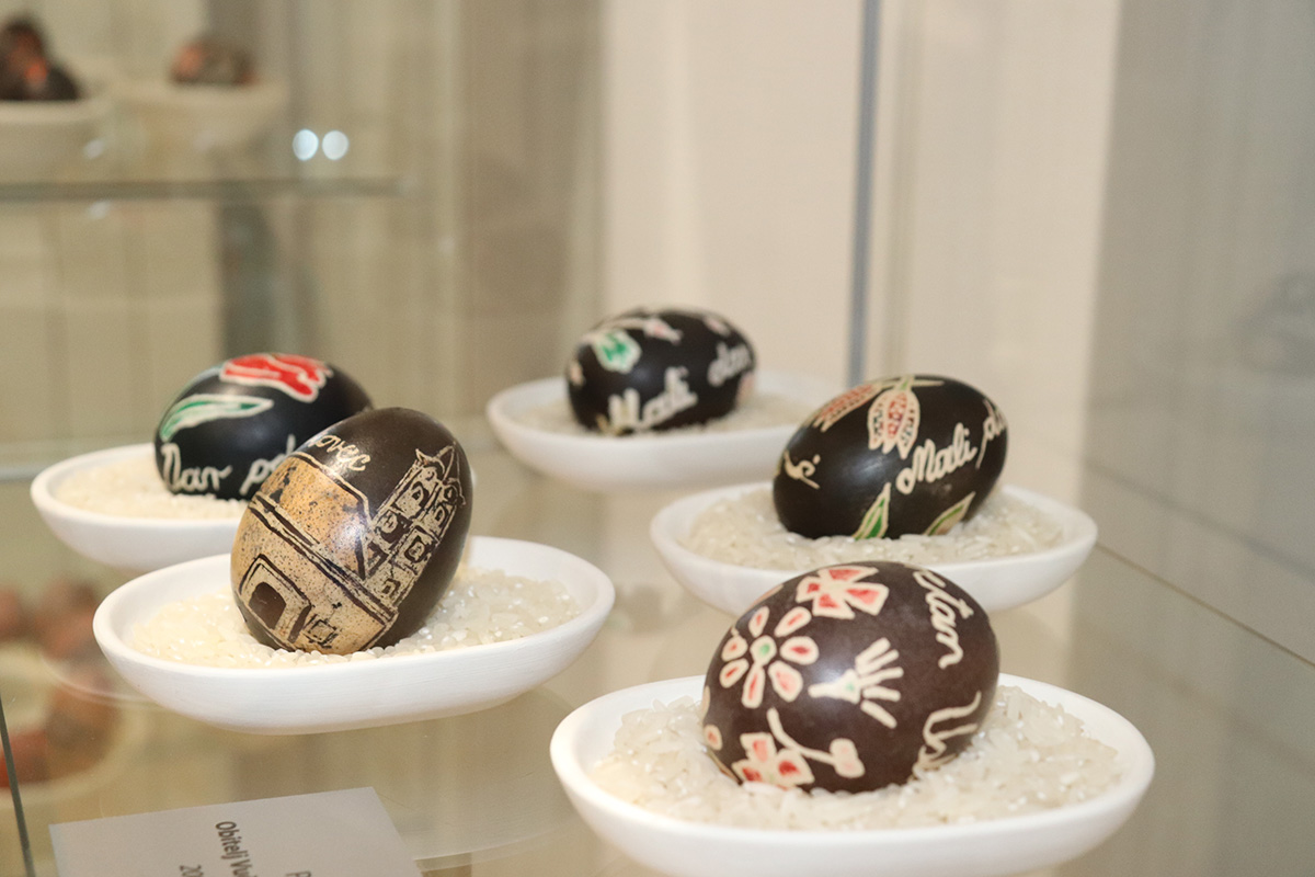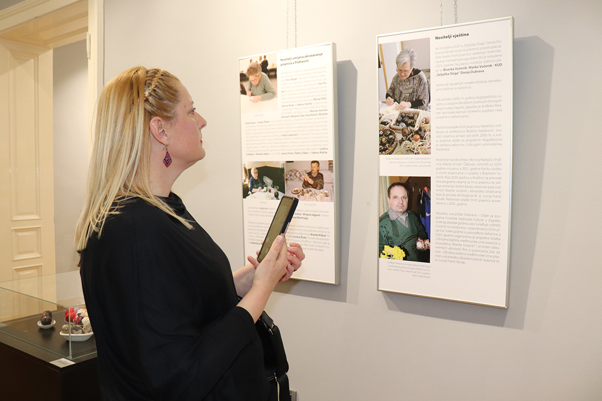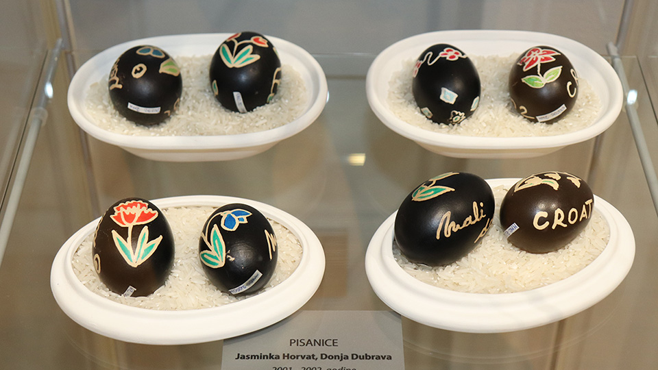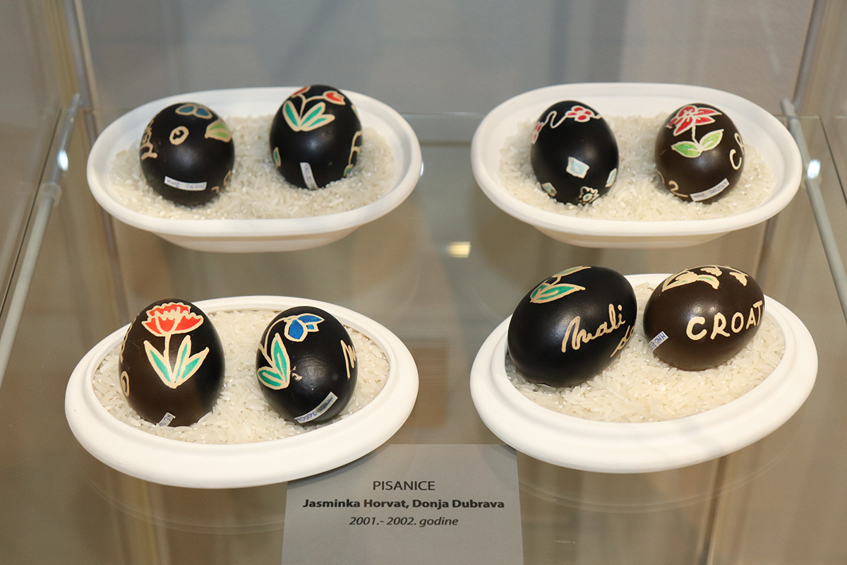 Na izložbi u Koprivnici izloženo je gotovo osamdeset izložaka iz fundusa Muzeja Međimurja Čakovec od kojih je najstarija pisanica iz 90-ih godina prošloga stoljeća, te Muzeja grada Koprivnice, kao i prikazi nekadašnjih uskrsnih običaja, a koji se još uvijek njeguju. Izložbu prati bogat katalog s fotografijama, opisima tog umijeća te poviješću. Naglasak izložbe je na nositeljima vještine koji i dan danas svoja znanja nesebično prenose na nove generacije. Izložba je realizirana uz financijsku pomoć Ministarstva kulture i medija Republike Hrvatske, Međimurske županije, Koprivničko-križevačke županije i Grada Koprivnice, a ostaje otvorena do 24. svibnja 2025. godine. Iduće godine izložba dolazi u Muzej Međimurja Čakovec.