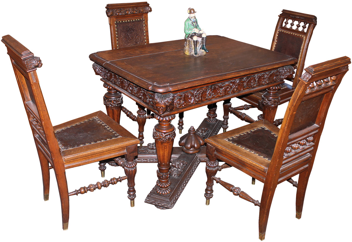 Blagovaonica je bila najljepše uređena prostorija u kući s namještajem često uvoženim iz Austrije ili Njemačke izvedenim u nekom od historicističkih neostilova od kojih je bio najpoznatiji alt deutsch ili njemačka neorenesansa. Ove reprezentativne prostorije simbolički su odražavale obiteljski status i bile dopunjene predmetima koji su im davali dodatnu osobnu vrijednost: portretima predaka, slikama, ogledalima i obiteljskim posuđem i srebrninom s ugraviranim monogramima. Grof Eugen Feštetić imao je vlastitu stolarsku radionicu u kojoj se izrađivao namještaj. U grofovskoj stolarskoj radionici radio je između ostalih i János Schulteisz, otac kipara i prvog direktora Muzeja Međimurja Aleksandra Schulteisa. U fundusu Muzeja nalazi se originalna salonska garnitura izrađena u Feštetićevoj radionici. Majstor stolar koji ju je izradio bio je Ištvan Cajzek. Garnitura se sastoji od stola, 4 stolice, ormara i manjeg stolića za posluživanje. Rađena je u drugoj polovini 19. stoljeća u neobaroknom stilu, od punog hrastovog drva i u potpunosti prati suvremene stilske tendencije zadnje četvrtine 19. stoljeća.