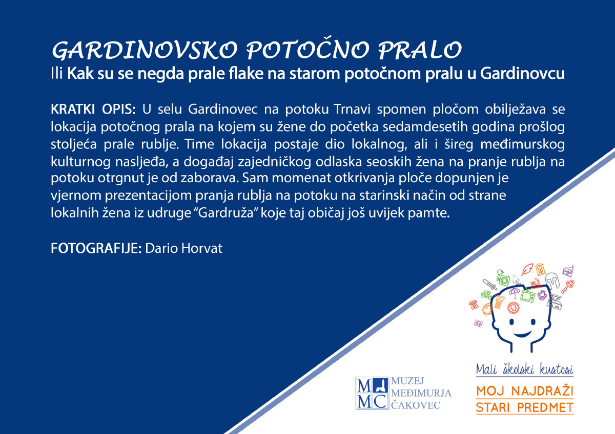 Projekt Mali školski kustosi – Gardinovsko potočno pralo u virtualnom svijetu na Međunarodni dan muzeja 18. svibnja