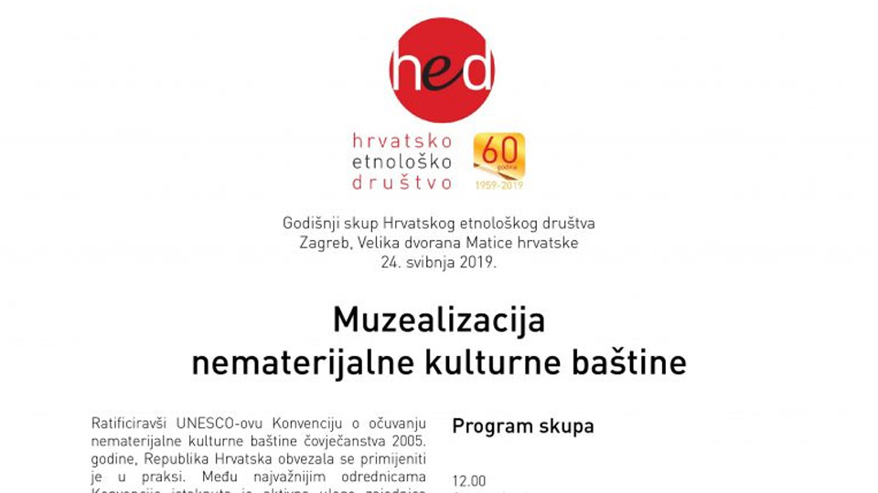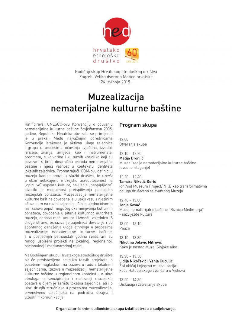Kustosica Muzeja Međimurja Čakovec Janja Kovač sudjelovala je na godišnjem skupu Hrvatskog etnološkog društva pod nazivom „Muzealizacija nematerijalne kulturne baštine“. Skup je održan 24. svibnja 2019. u Velikoj dvorani Matice hrvatske u Zagrebu.