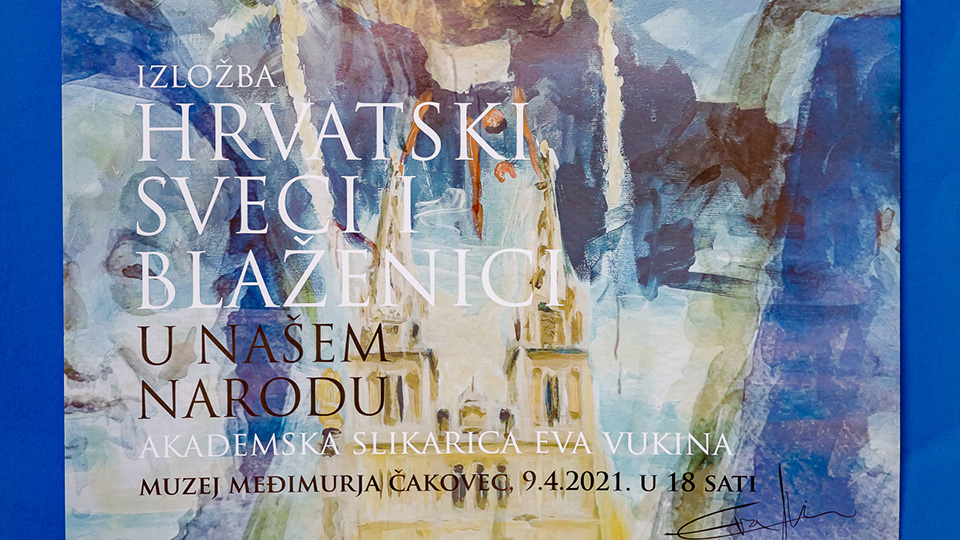 „Sveci su dokaz da svetost nije nemoguća“, kazala je na otvorenju svoje izložbe „Sveci i blaženici u našem narodu“ mlada akademska slikarica, Čakovčanka Eva Vukina. Izložba je otvorena u atriju palače Zrinskih, a četrdesetak slika hrvatskih svetaca, blaženika i službenika Božjih izloženo je u prostoru Izložbenog salona Muzeja Međimurja Čakovec.