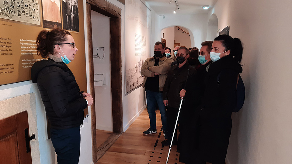 Povodom 70. obljetnice postojanja i djelovanja Udruge slijepih i slabovidnih Međimurske županije, u ponedjeljak 25. listopada 2021. godine ugostili smo dio članova u našem novom Muzeju nematerijalne baštine „Riznici Međimurja“ u novoobnovljenoj fortifikaciji Starog grada u Čakovcu. U dogovoru s predsjednicom Udruge gospođom Marijom Ciglar organizirali smo im besplatan vođeni razgled novog muzeja. Muzejom su ih provele ravnateljica Maša Hrustek Sobočan i kustosica Janja Kovač.