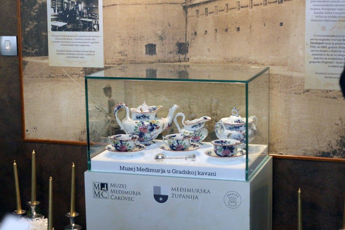Izlaganje predmeta - mijenjali su se svaka dva mjeseca - bilo je redovito popraćeno kulturnim programom, kraćim predavanjem kustosa te gostovanjem živućih osoba vezanih uz izložene predmete ili samu kavanu (Lilika Legenstein). Prvi predmet koji je izložen 26. travnja 2017. godine, bio je čajni servis engleske tvornice John Davenport. Ta čuvena tvornica je tijekom 18. i 19. stoljeća slovila kao jedan od najpoznatijih svjetskih proizvođača skupocjenog porculana. Začudo, jedan takav servis našao se krajem 19. stoljeća u Čakovcu, u domu ugledne i bogate čakovečke građanske obitelji, a danas se se čuva u Muzeju Međimurja Čakovec.