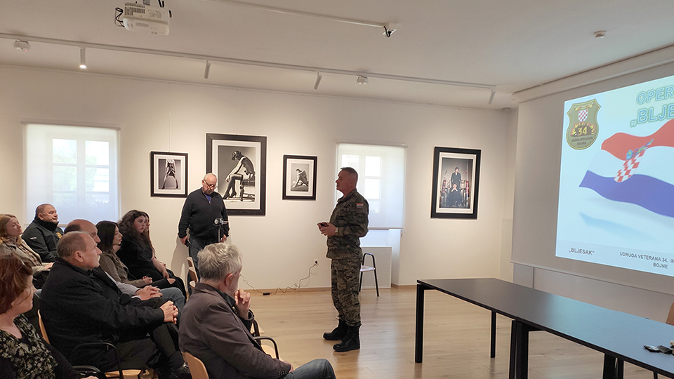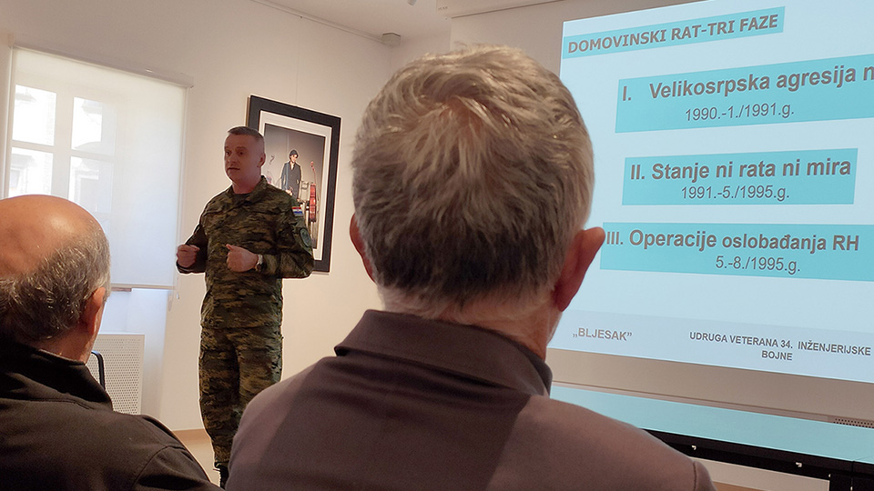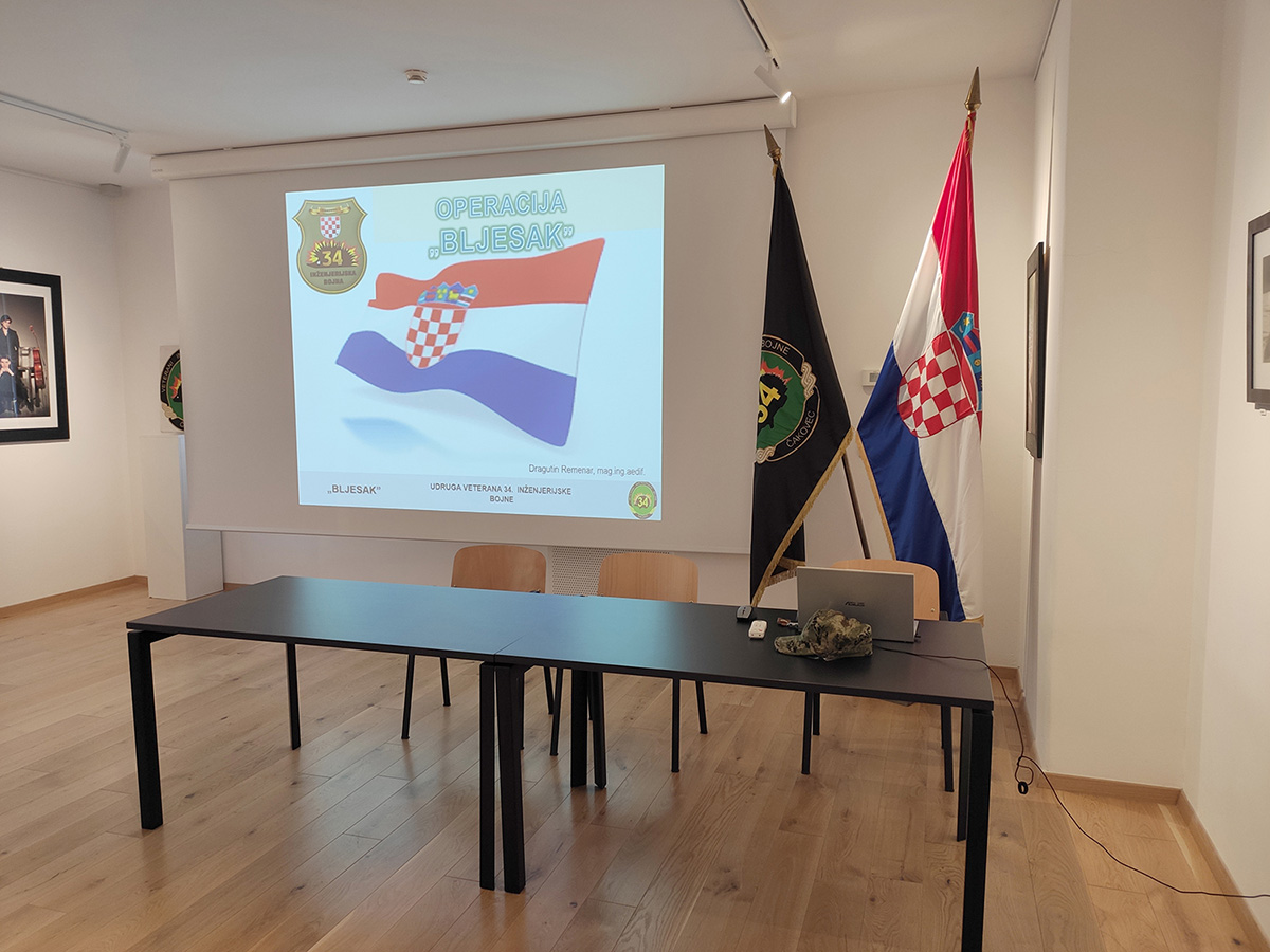 Nakon animacije koja je dala jasan pregled događaja u Domovinskom ratu u Hrvatskoj, pukovnik Dragutin Remenar, učesnik VRO “Bljesak” i jedan od zapovjednika 34. inženjerijske bojne Čakovec te aktualni predsjednik Udruge veterana inženjerijske bojne Domovinskog rata, održao je predavanje o događajima koji su prethodili ovoj operaciji kojom je započela III. faza Domovinskog rata i operacije oslobađanja teritorija Republike Hrvatske, kao i doprinosu 34. inženjerijske bojne Čakovec koja je jedina od postrojbi osnovanih u Međimurju sudjelovala u VRO „Bljesak“.