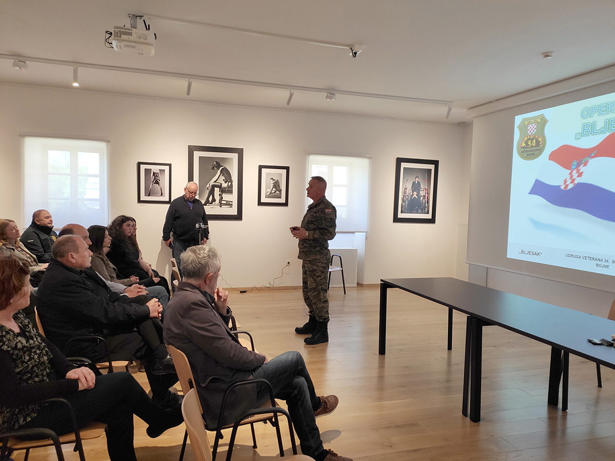 Umirovljeni pukovnik Željko Tomašić, u vrijeme VRO „Bljesak“ načelnik inženjerije ZP Bjelovar, svojim je sjećanjima dodatno približio prisutnima ovu operaciju te odnos hrvatskih i srpskih vojnih snaga prema civilima u Domovinskome ratu.