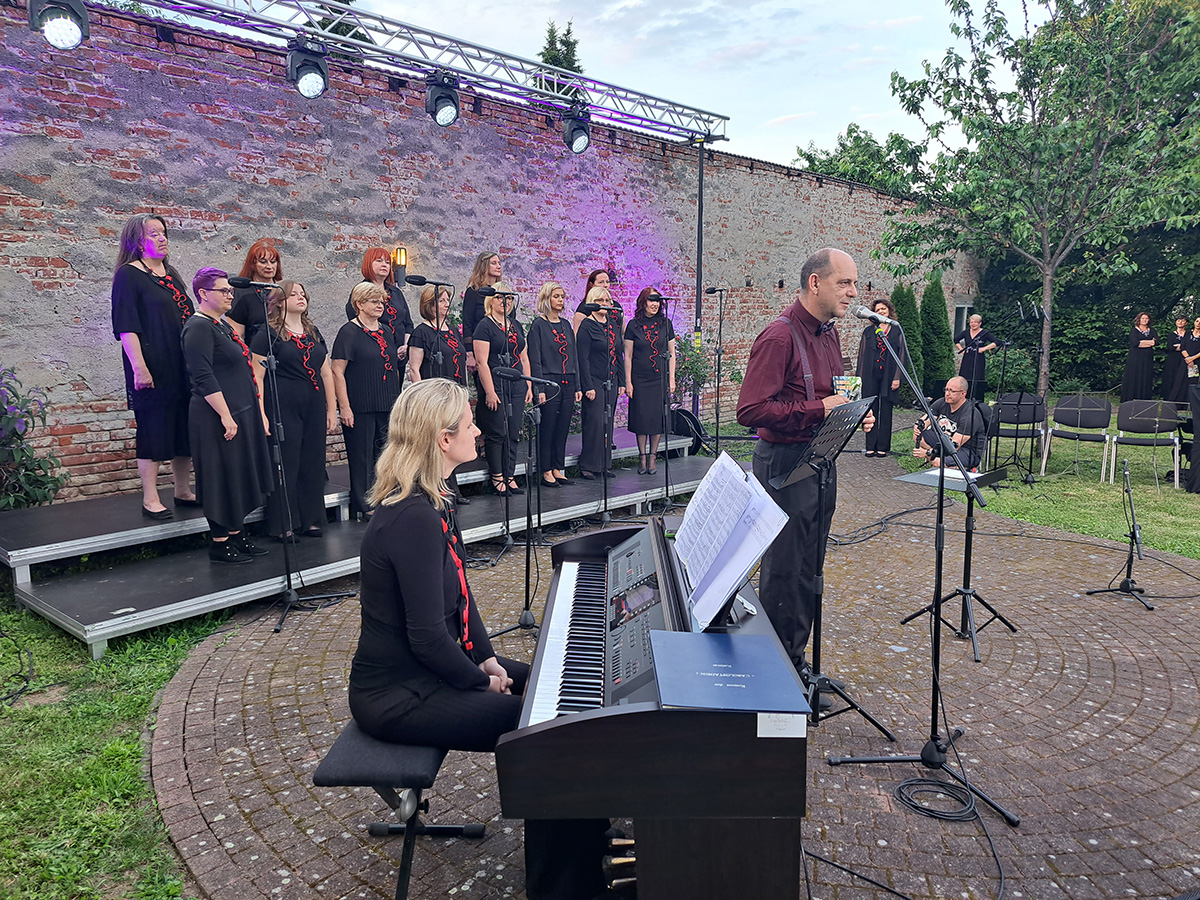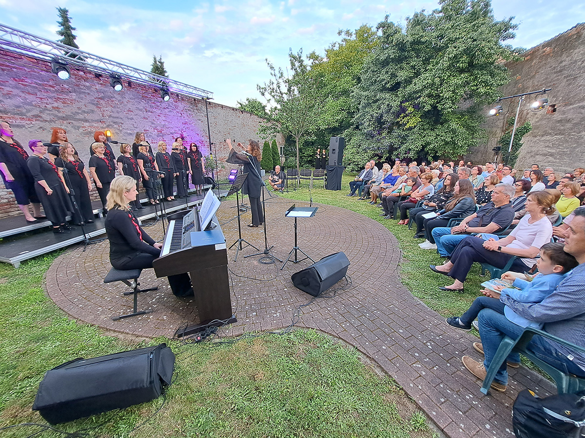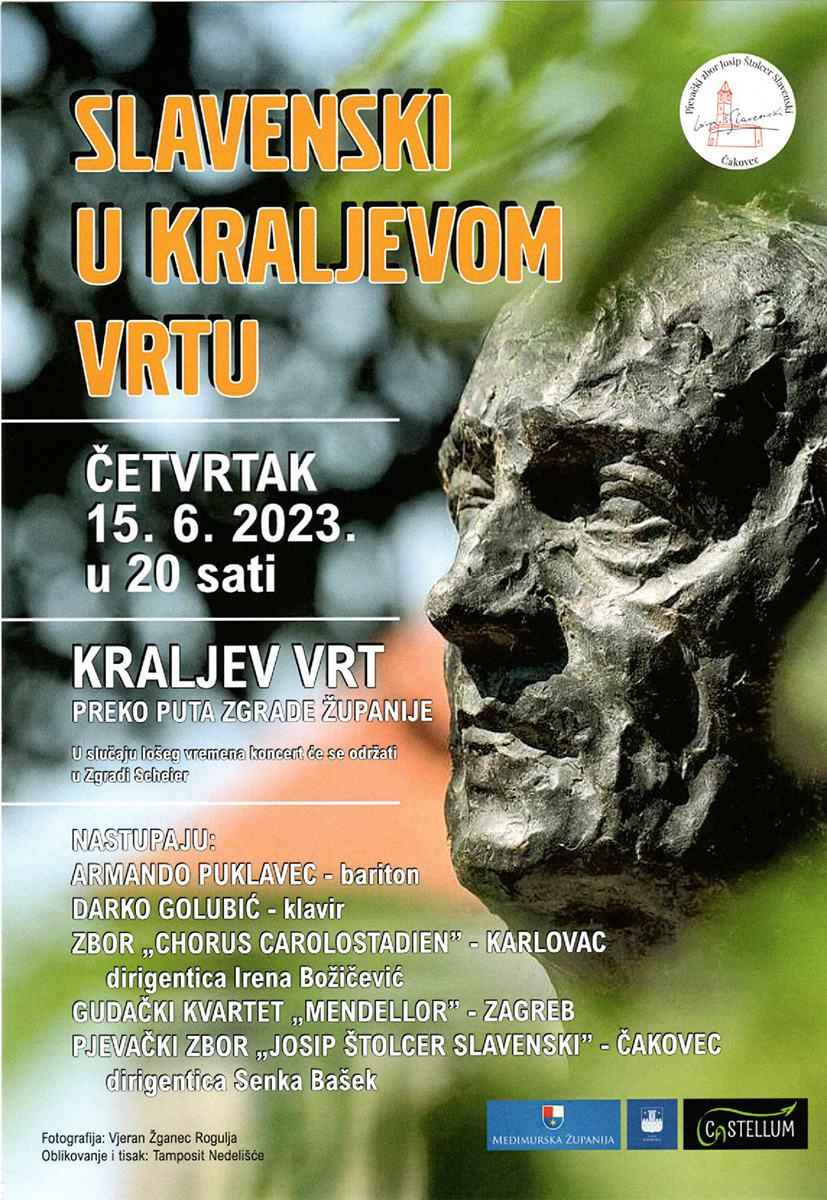 U prekrasnom zelenom ambijentu starinskog građanskog dvorišta u „Kraljevom vrtu“ u Čakovcu održan je u četvrtak 15. lipnja 2023. koncert čakovečkog Pjevačkog zbora Josip Štolcer Slavenski i njihovih gostiju.