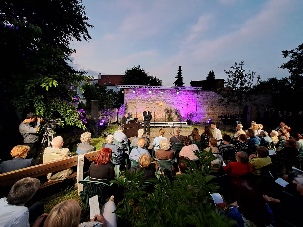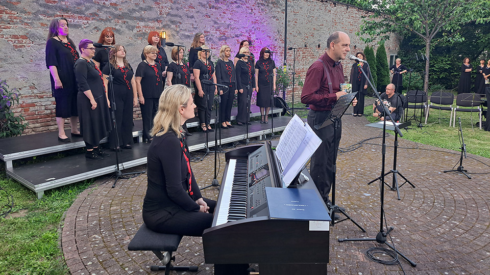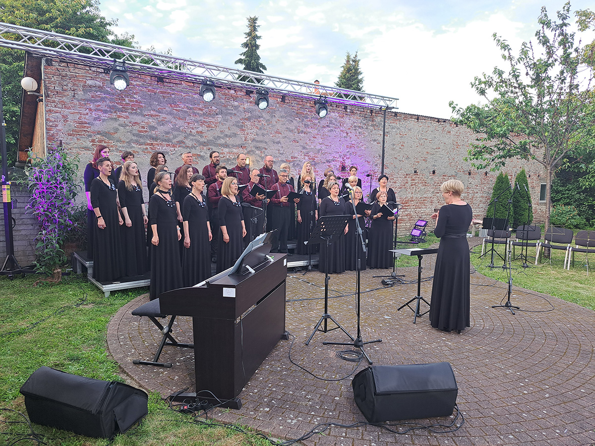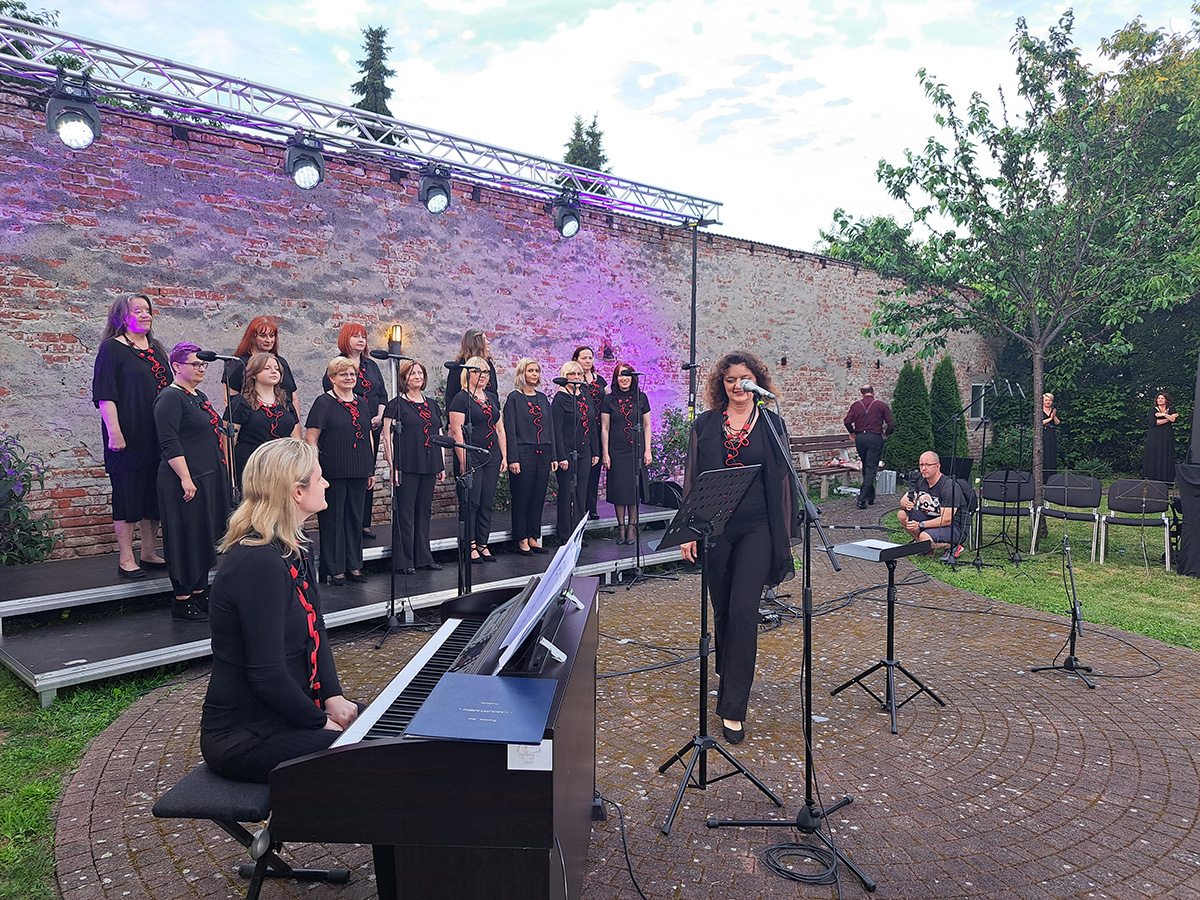 U prekrasnom zelenom ambijentu starinskog građanskog dvorišta u „Kraljevom vrtu“ u Čakovcu održan je u četvrtak 15. lipnja 2023. koncert čakovečkog Pjevačkog zbora Josip Štolcer Slavenski i njihovih gostiju.