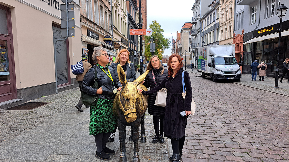 Naša delegacija posjetila je prvog dana, prije kongresa, povijesnu jezgru centra Toruna. Stara jezgra ovog zadivljujućeg grada nalazi na UNESCO-voj listi zaštićene svjetske baštine, a najstariji dio grada čine ostaci utvrde teutonskih vitezova iz 13. stoljeća. Torun je poznat i kao rodni grad Nikole Kopernika, a najpoznatiji proizvod su medenjac (poljski: pierniki) koje sami izrađuju. Naše predstavnice posjetile su i Etnografski muzej u Torunu, Muzeum Etnograficzne im. Marii Znamierowskiej-Prüfferowej w Toruniu, koji osim stalnog postava i povremenih izložbi krije pravi biser, a to je Etnografski park na otvorenom u kojem se nalaze spomenici drvene arhitekture iz njihovog kraja. Radi se o stambenim kućama, mlinu, stajama, radionicama poput stolarske ili kovačke, brodu-kući i slično. Građevine su sve opremljene originalnim seoskim namještajem, pokrivene sa slamnatim krovovima te su uređene i okućnice sa povrtnjacima i ružičnjacima s originalnim povrćem i cvijećem kakvo se sadi u ruralnim dijelovima njihovog kraja. Muzej barata fundusom od 80 000 predmeta i reprezentativan je za očuvanje i prezentaciju različitih aspekata poljske narodne kulture.