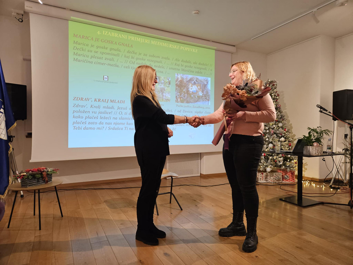 U mjesecu studenom, Mjesecu međimurske popevke, na popularnom predavanju petkom uživali smo na predivnom predavanju i edukativnoj radionici pod naslovom Međimurska popevka u glazbenim žanrovima koje je održala poznata međimurska etnologinja i antropologinja, Čakovčanka doc. dr. sc. Lidija Bajuk.