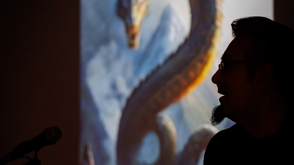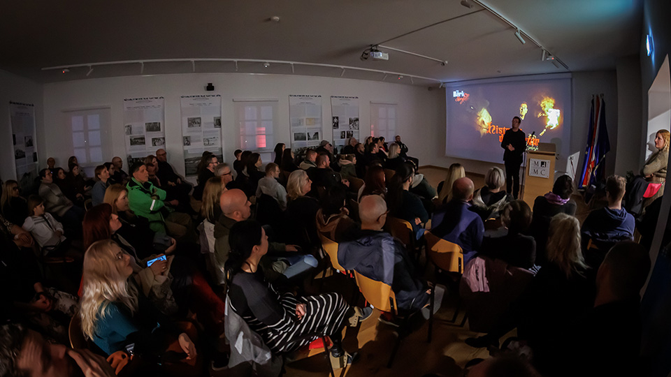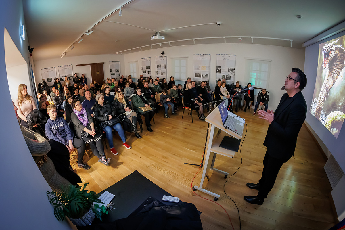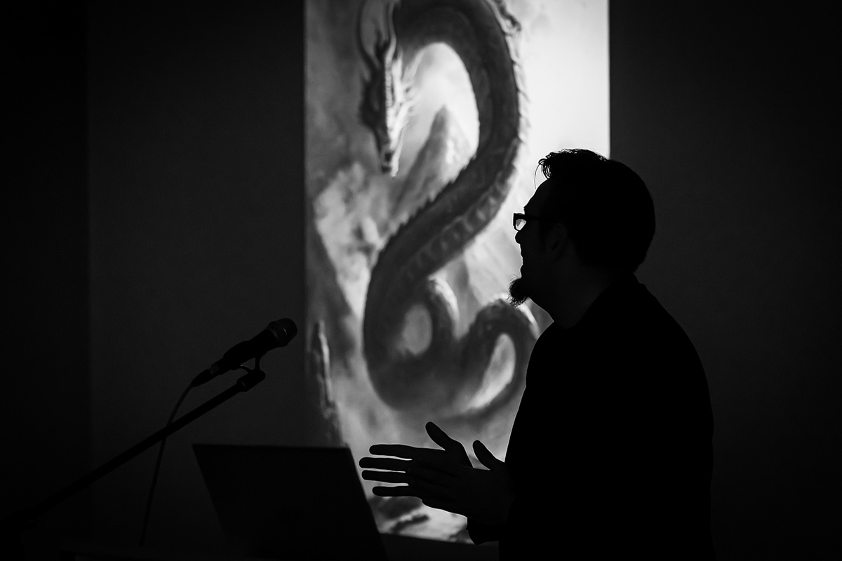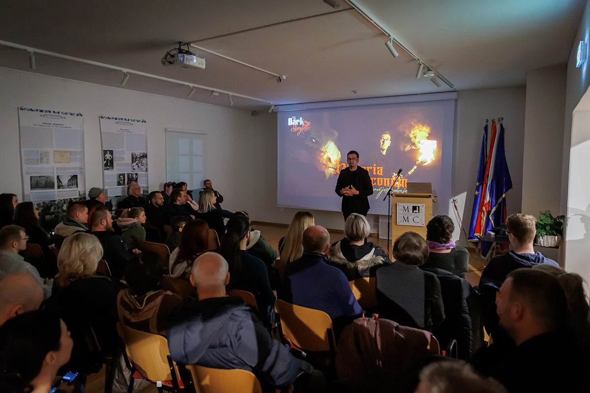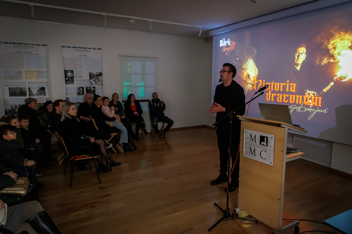 Večer se nastavila popularnim predavanjem Kristijana Petrovića, poznatoga i kao The Dark Storyteller’, pod naslovom: „Historia draconum – Povijest zmajeva“. Na predavanju u dupkom punoj Multimedijalnoj dvorani Riznice Međimurja upoznao je znatiželjnu publiku s ovim fantastičnim stvorenjima i njihovom mitologijom. Iz predavanja smo saznali i to da se Međimurska županija može pohvaliti s najvećim brojem zmajeva koji drijemaju ispod površine zemlje na više lokacija, u Čakovcu, Donjoj Dubravi, Donjem Vidovcu, Štrigovi..., a zovu ih Pozoji.