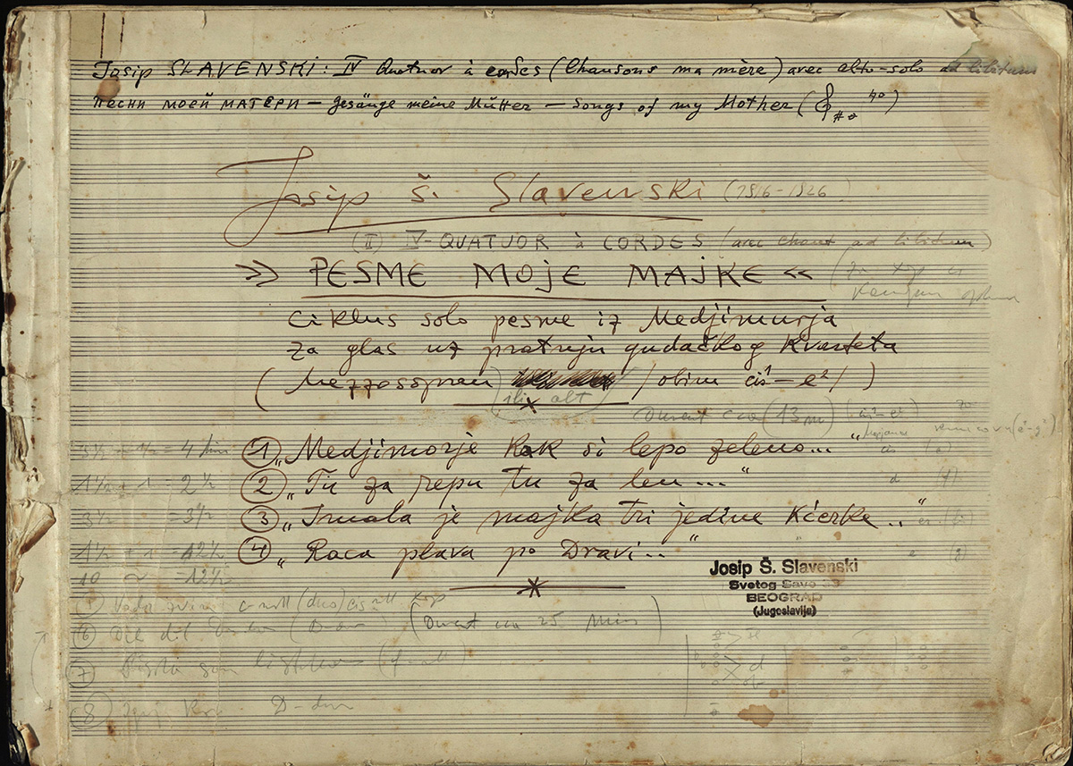 Josip je oduvijek imao nježno sjećanje na mamiku, djetinjstvo i Međimurje. Majka, majčica, kako ju je on od milja zvao, bila mu je vječna inspiracija, podrška, ali i autoritet. Svojim mu je glasom utkala prve zvukove međimurskoga melosa kojima je on udahnuo melodiju novog značaja. Sabrao ih je u ciklus pjesama pod nazivom Pesme moje majke kojeg je postupno stvarao od 1913. do 1944. godine. Posvetio mu je svu svoju pažnju i pomno birao svaki ton pišući za nježni ženski vokal i pratnju gudačkoga kvarteta. Opisno, to je vrlo snažan glas koji nosi melankoliju, majčinsku brigu za dobrobit svoje djece, obzirnost u načinu interpretacije, glas koji odgaja, okupira vrijeme, ljubav i nježnost prema djeci, ima poštovanje kojem ga je učila te veliča žene skromnoga dostojanstva – a sve je to utkano u fizički istrošenu majku. Snaga, volja i podržavanje u glazbenom aspektu, postupno su (samo fizički) slabile na njezinom ispijenom licu pod stare dane sve do međuratnoga razdoblja kada je umrla u Čakovcu, 1931. godine.