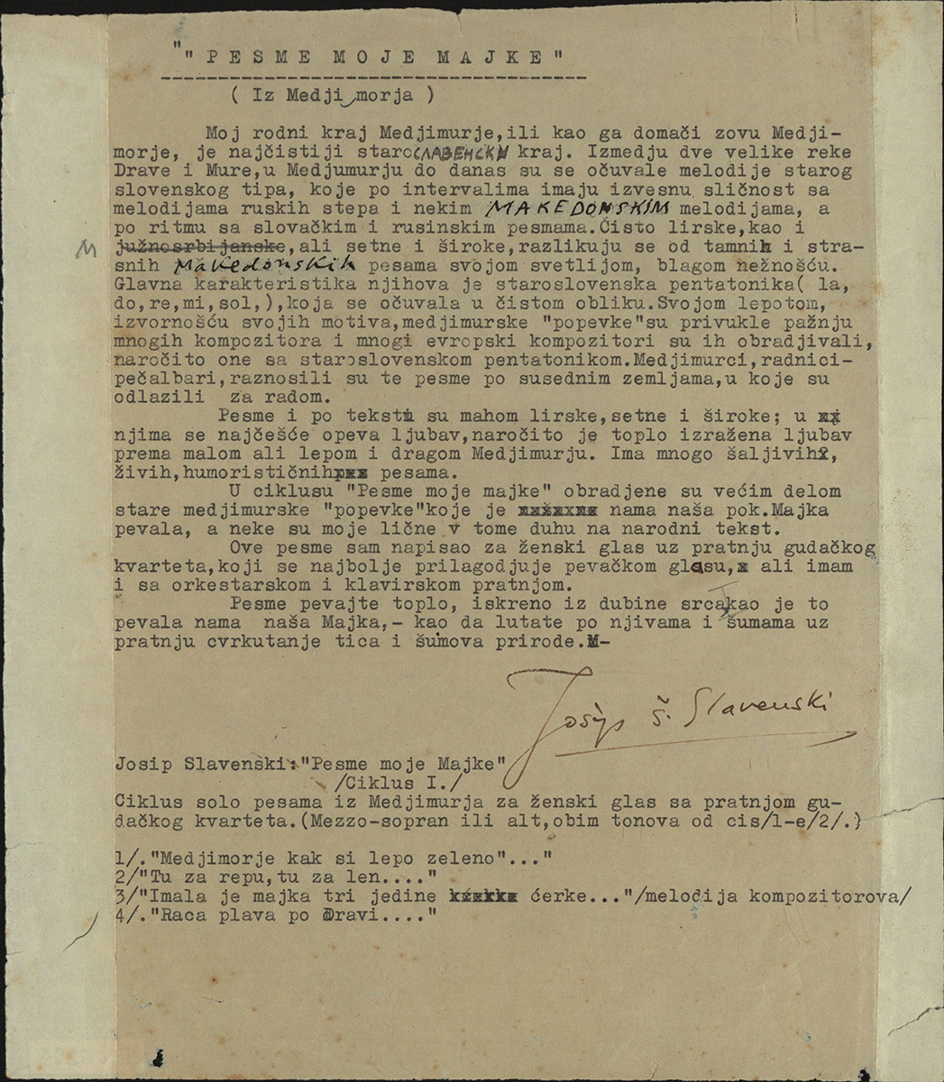 Za kraj, izdvajamo dokument u kojem je Josip s osobitom pažnjom dao naputak kako da se izvode njegove pjesme – Pesme pevajte toplo, iskreno iz dubine srca kako je to pevala nama naša Majka, kao da lutate po njivama i šumama uz pratnju cvrkutanja tica i šumova prirode.