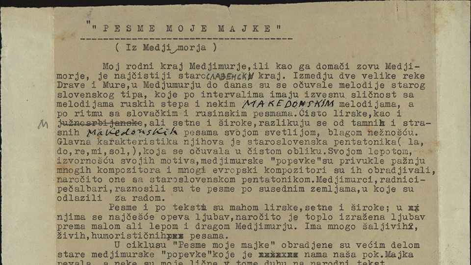 Riječ je o podužem periodu stvaranja spomenutog ciklusa u kojem je on odrastao, sazrijevao i formirao se u čovjeka kojem se kroz godine mijenjala perspektiva, shvaćanje i poimanje Majke kao majke te je narodne pjesme i melodijski prilagođavao, pomno odabirući svaki ton i instrument koji će ga izvesti ne bi li publici prenio i poistovjetio te dvije riječi – majčinstvo i Međimurje. Te stare međimurske popevke, Međimurje tak si lepo zeleno, Tu za repu – tu za len, Imala je majka tri jedine kćerke, Raca plava po Dravi, Majka je pjevala Josipu i sestrama u svim prilikama, bile one sretne ili tužne (a bilo ih je s obzirom na očev neuspjeli pokušaj da se dokaže glazbeno i traženje utjehe u alkoholizmu, a na kraju i gubitak pekarnice). U pjesmama lirskog, sjetnog karaktera prvenstveno je opjevana ljubav, ona topla izražena ljubav prema lijepom i dragom Međimurju koja se tako lako može poistovjetiti s ljubavlju prema djetetu.