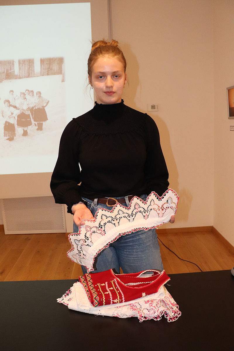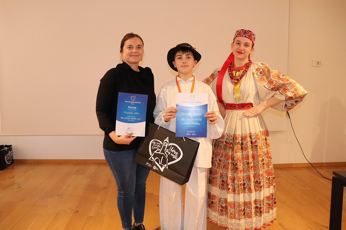 Drugo mjesto osvojio je mali kustos Armand Kousek koji je predstavio pečki vez i ornamentiku na moslavačkoj narodnoj nošnji. Učenik je 5.b razreda Osnovne škole Mate Lovraka iz Kutine, a mentorica je Kristina Lukec.