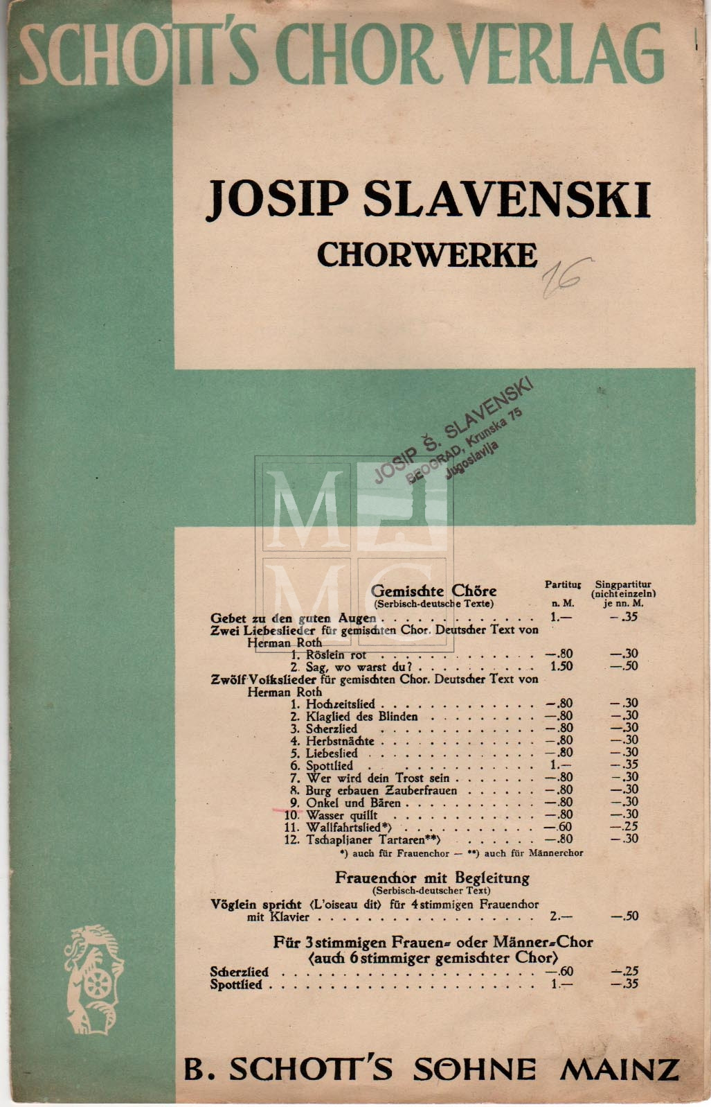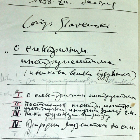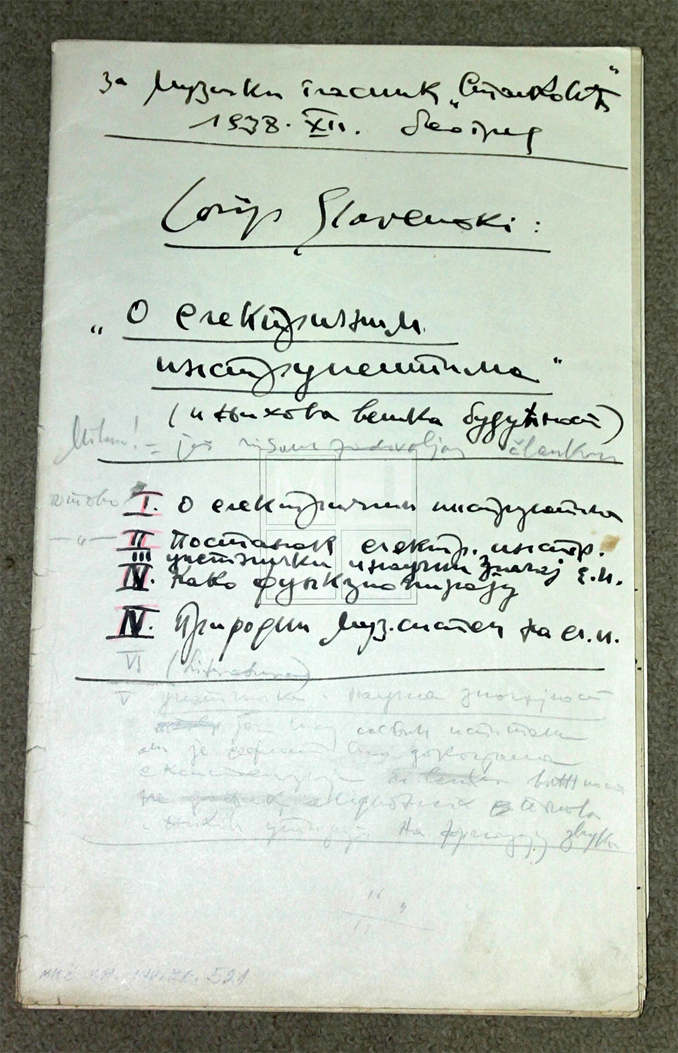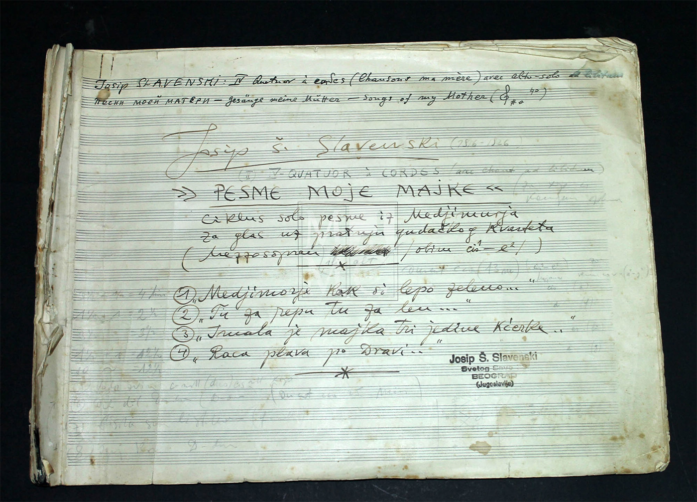 vrsta predmeta: originalne partiture pisane rukopisom Slavenskog, objavljene partiture, knjižnica i radna soba Josipa Štolcera Slavenskog, fotografije, glazbala, pisma